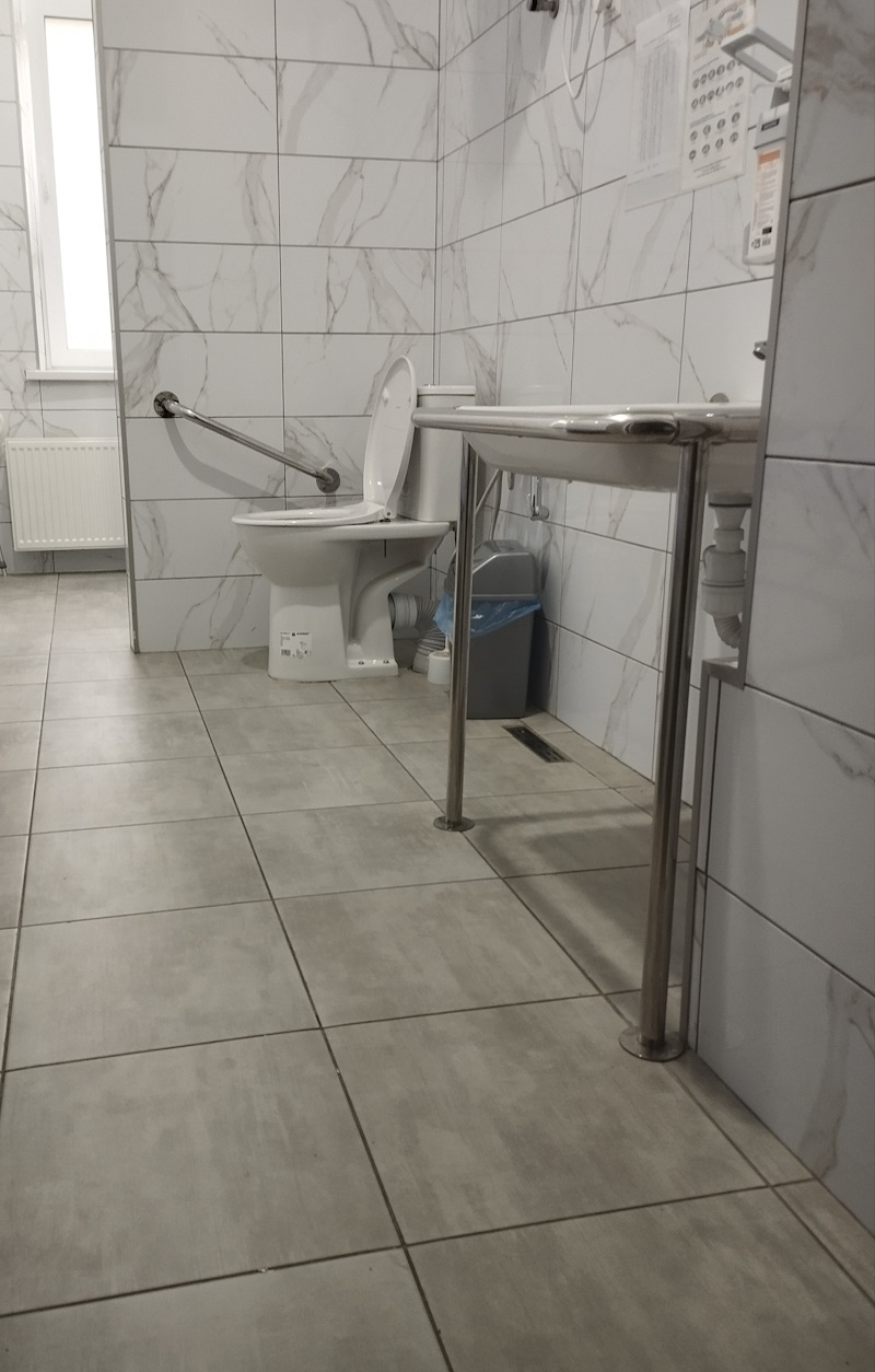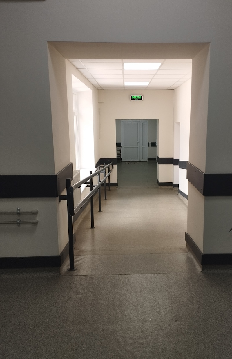 Так, всі корпуси лікувального закладу оснащені ліфтами, санвузлами, а також пандусами з поручнями, які промарковані жовтим кольором та відповідають державним стандартам, будівельним нормам і правилам щодо доступності для осіб з івалідністю та інших маломобільних груп населення.